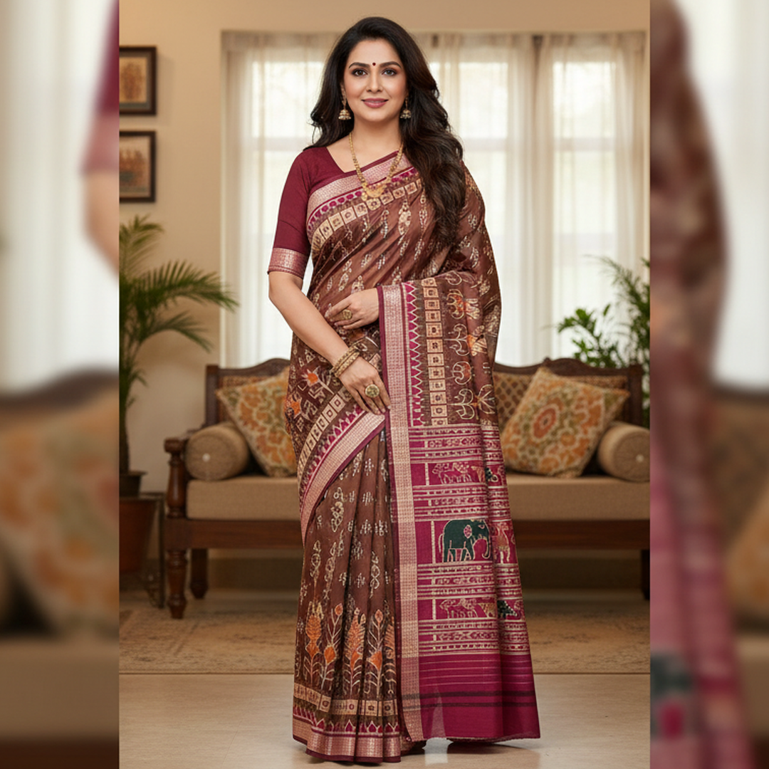 Odisha Ikat Bomkai Silk saree dark brown and maroon combination OC-409